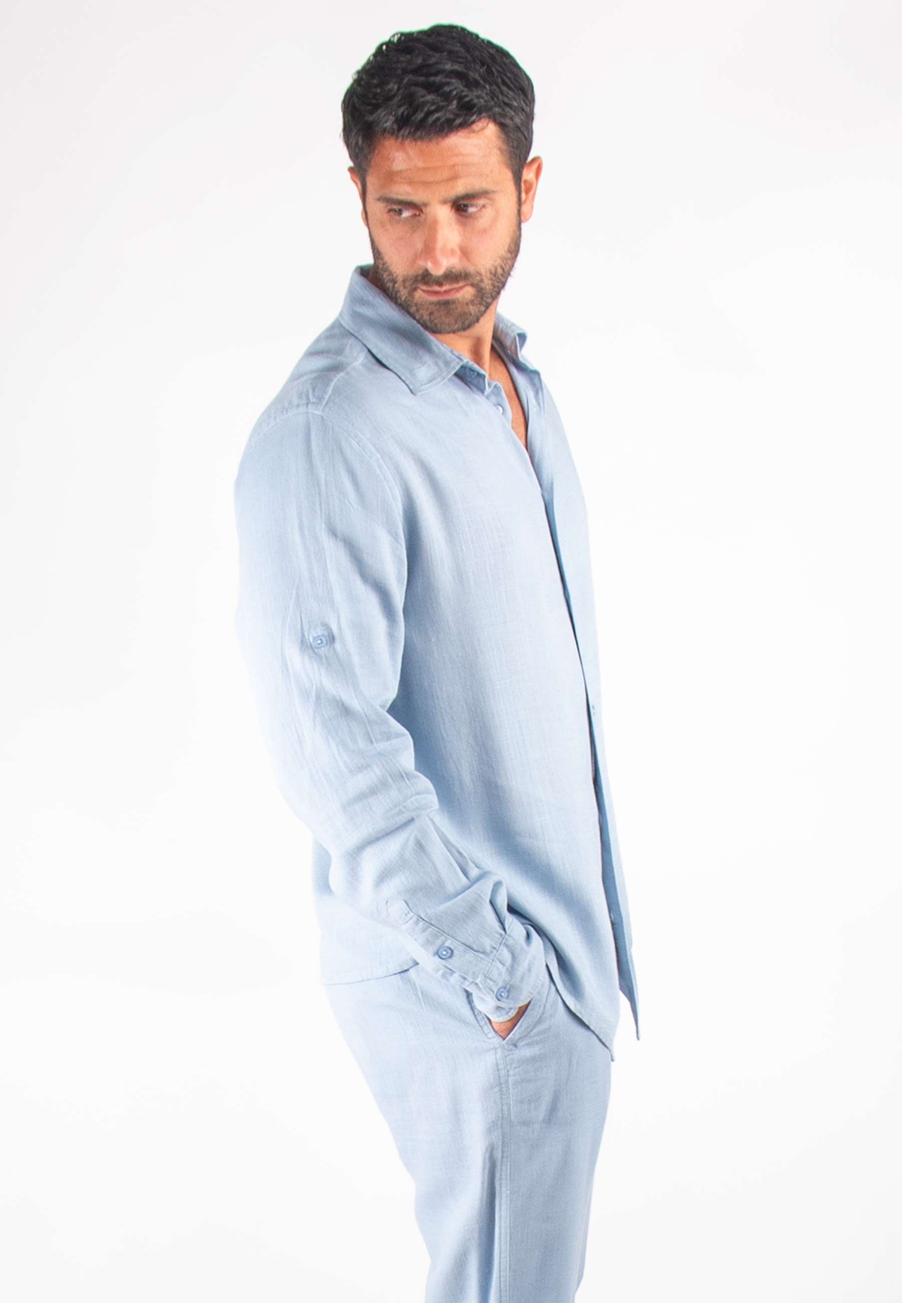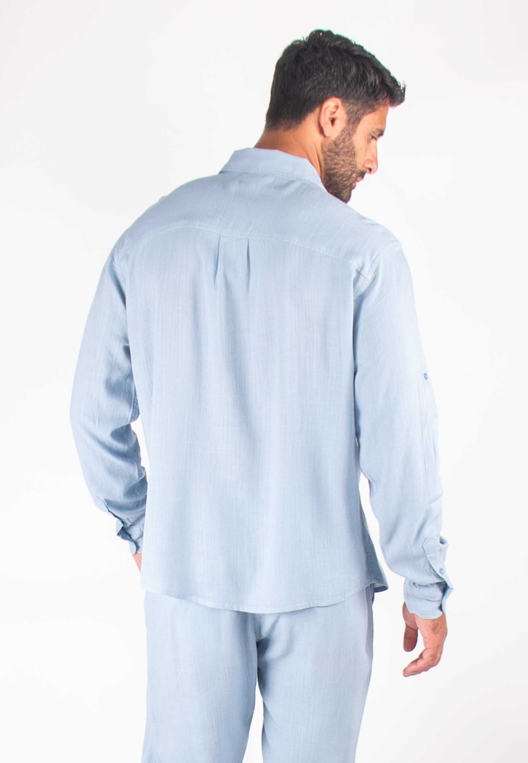 Chemise Homme Mélange Viscose et Lin - Bleu ciel