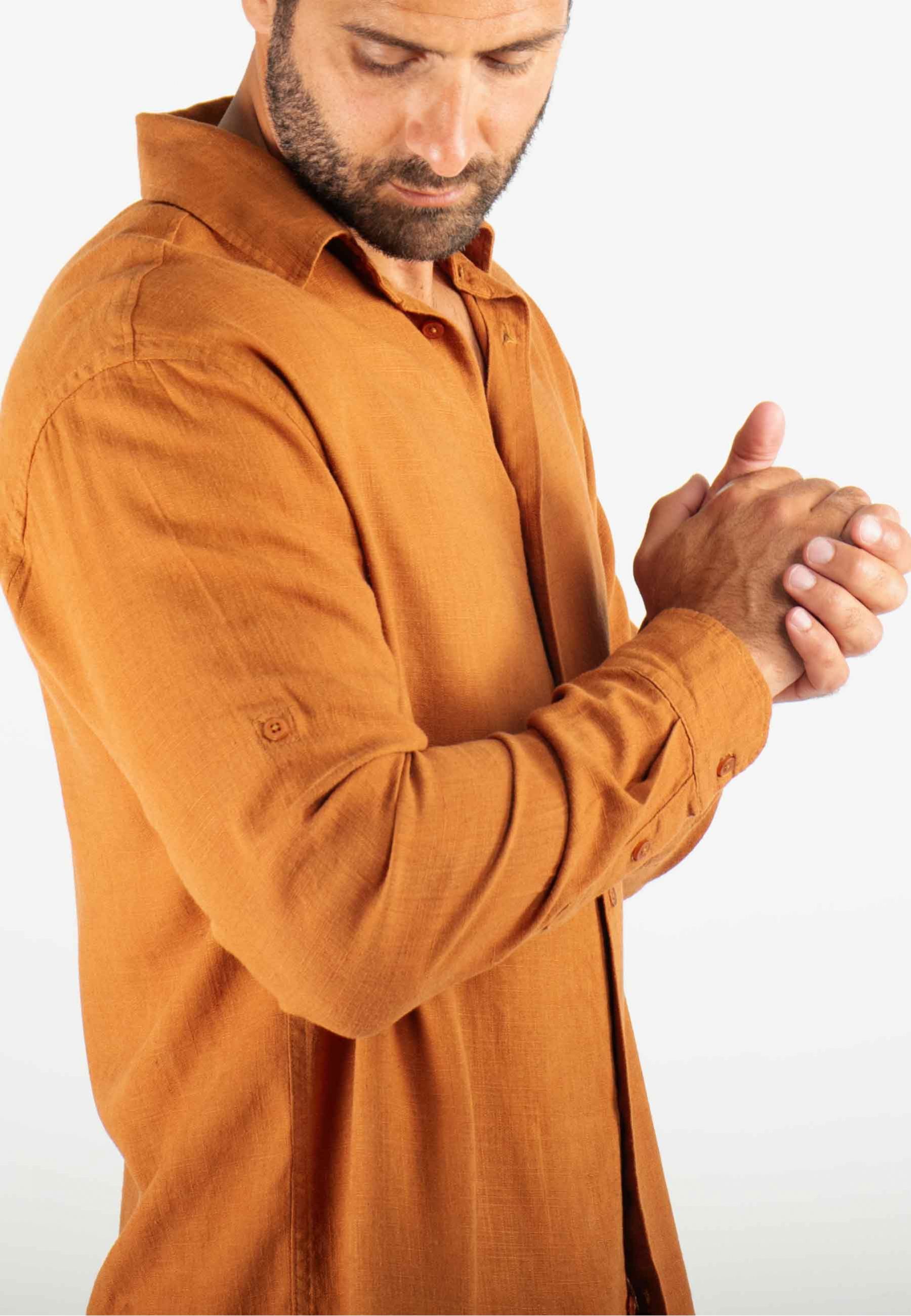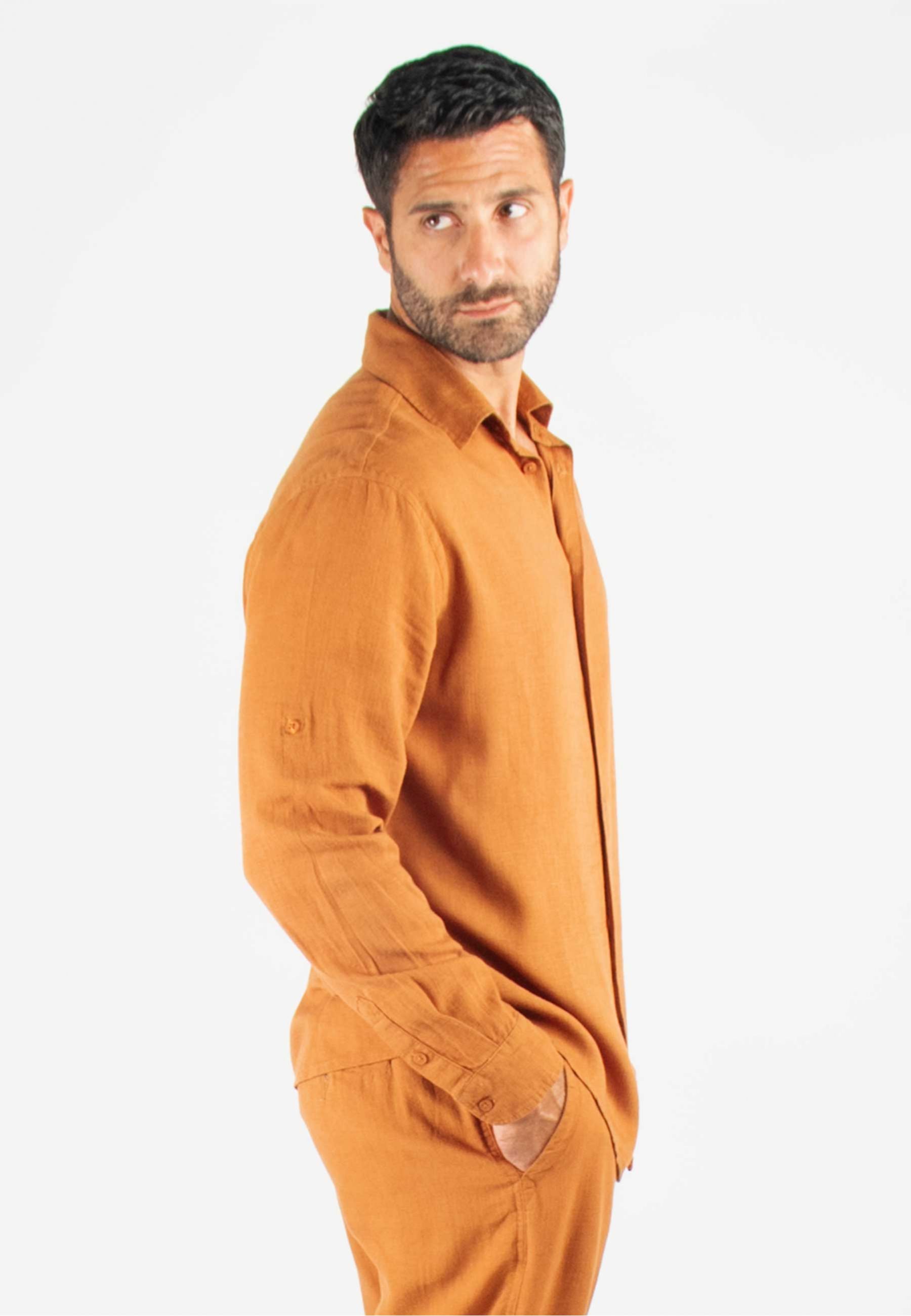 Chemise Homme Mélange Viscose et Lin - Terracotta