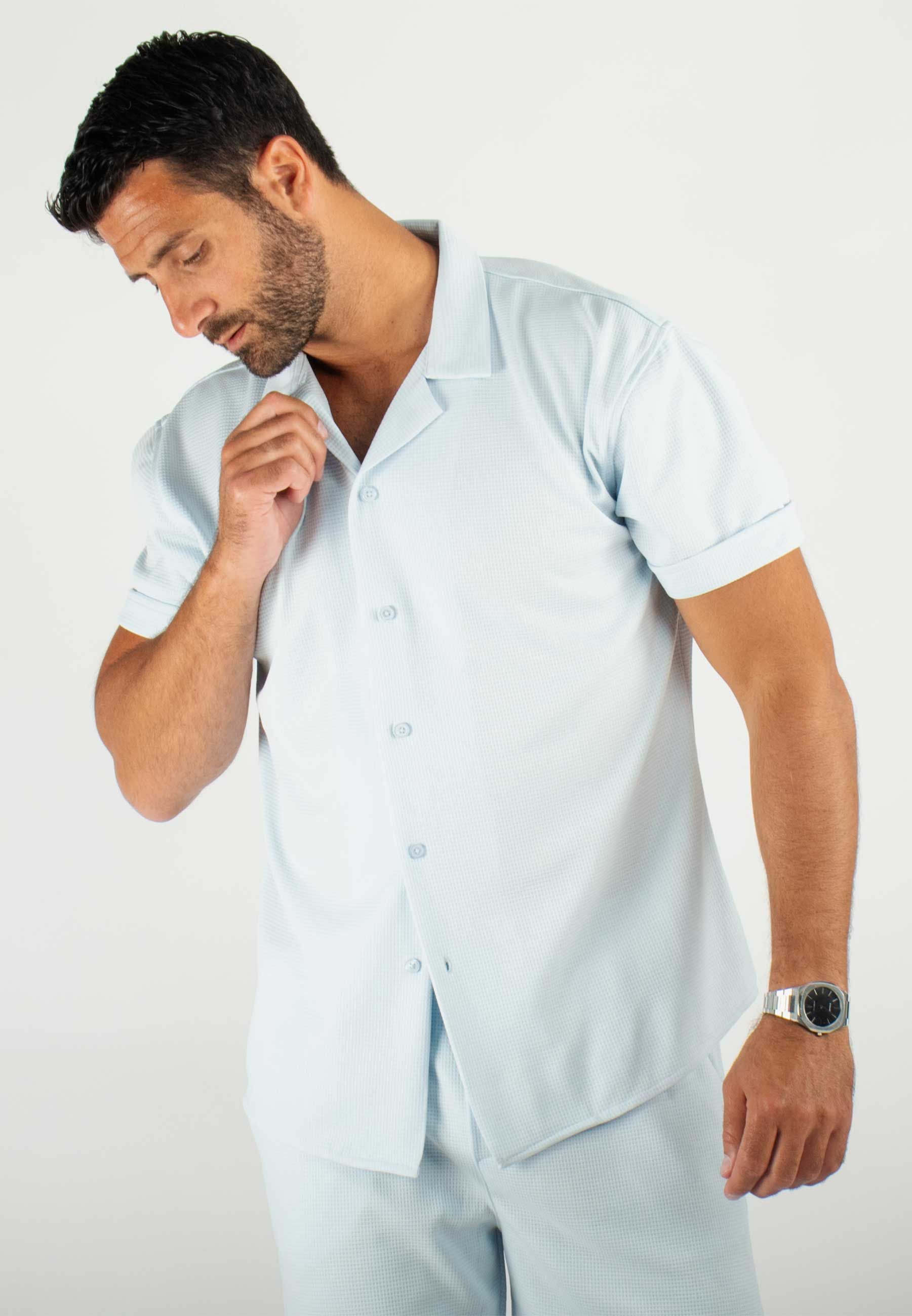 Chemisette Homme Bleu Ciel Texturée - Fraîcheur Été