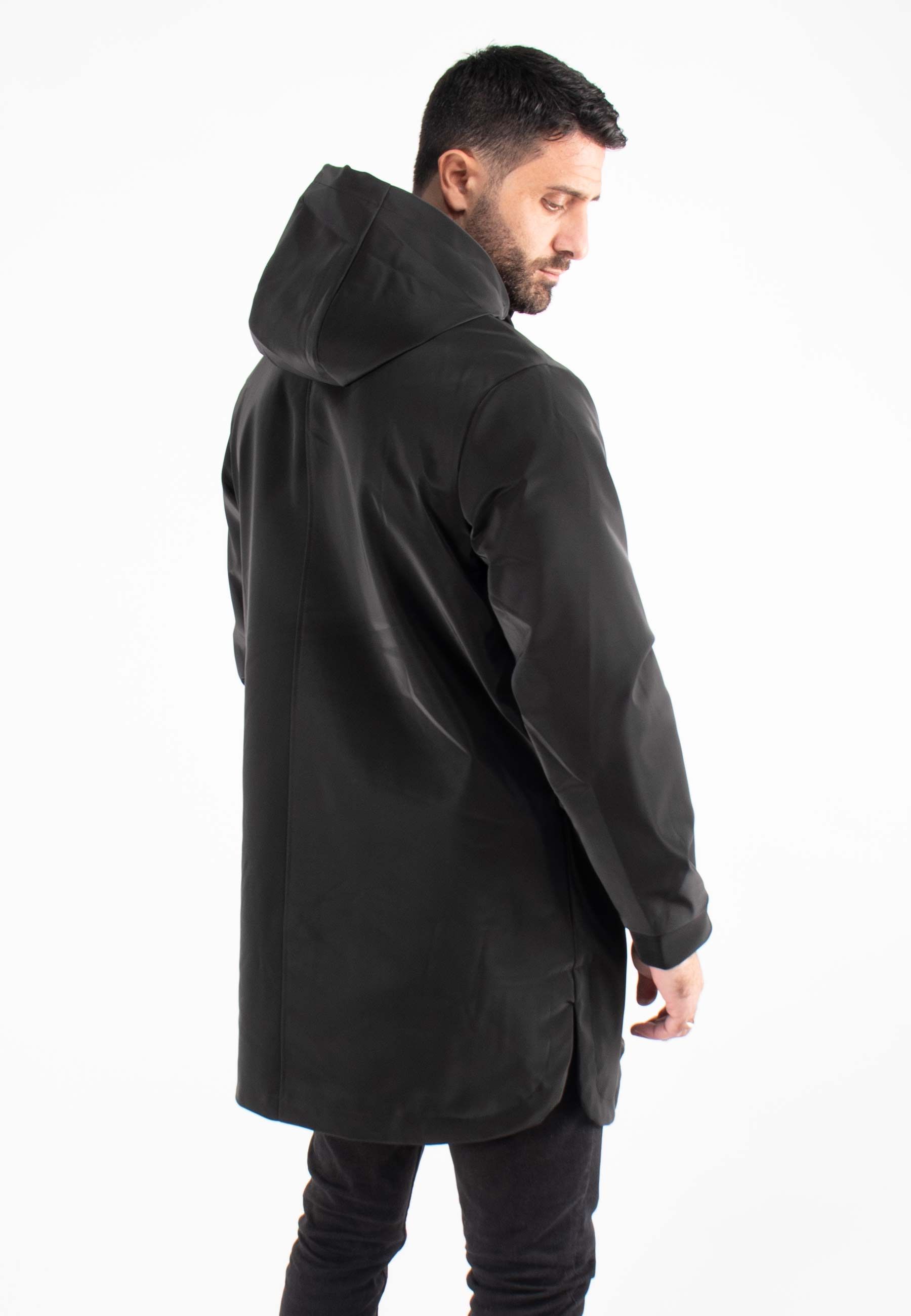 Description Parka longue au style urbain minimaliste. Sa matière enduite PU donne une finition propre, idéale pour rester au sec tout en gardant du style.