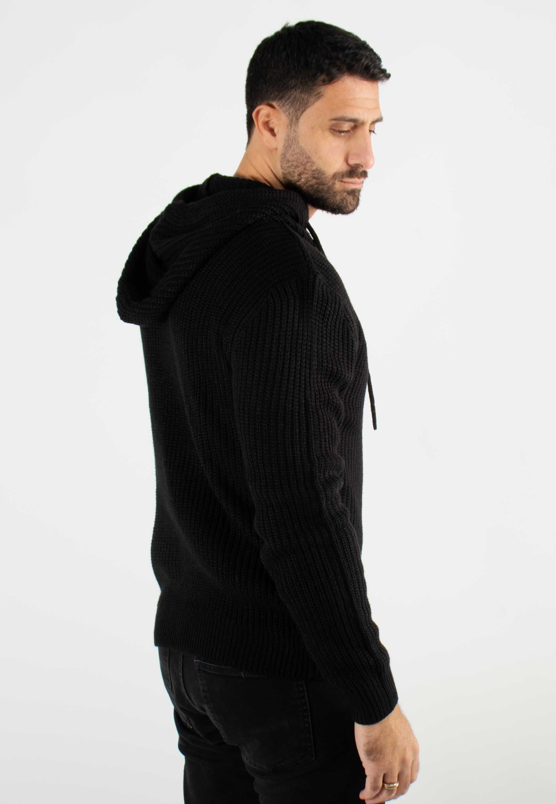 Pull à capuche en maille épaisse noir